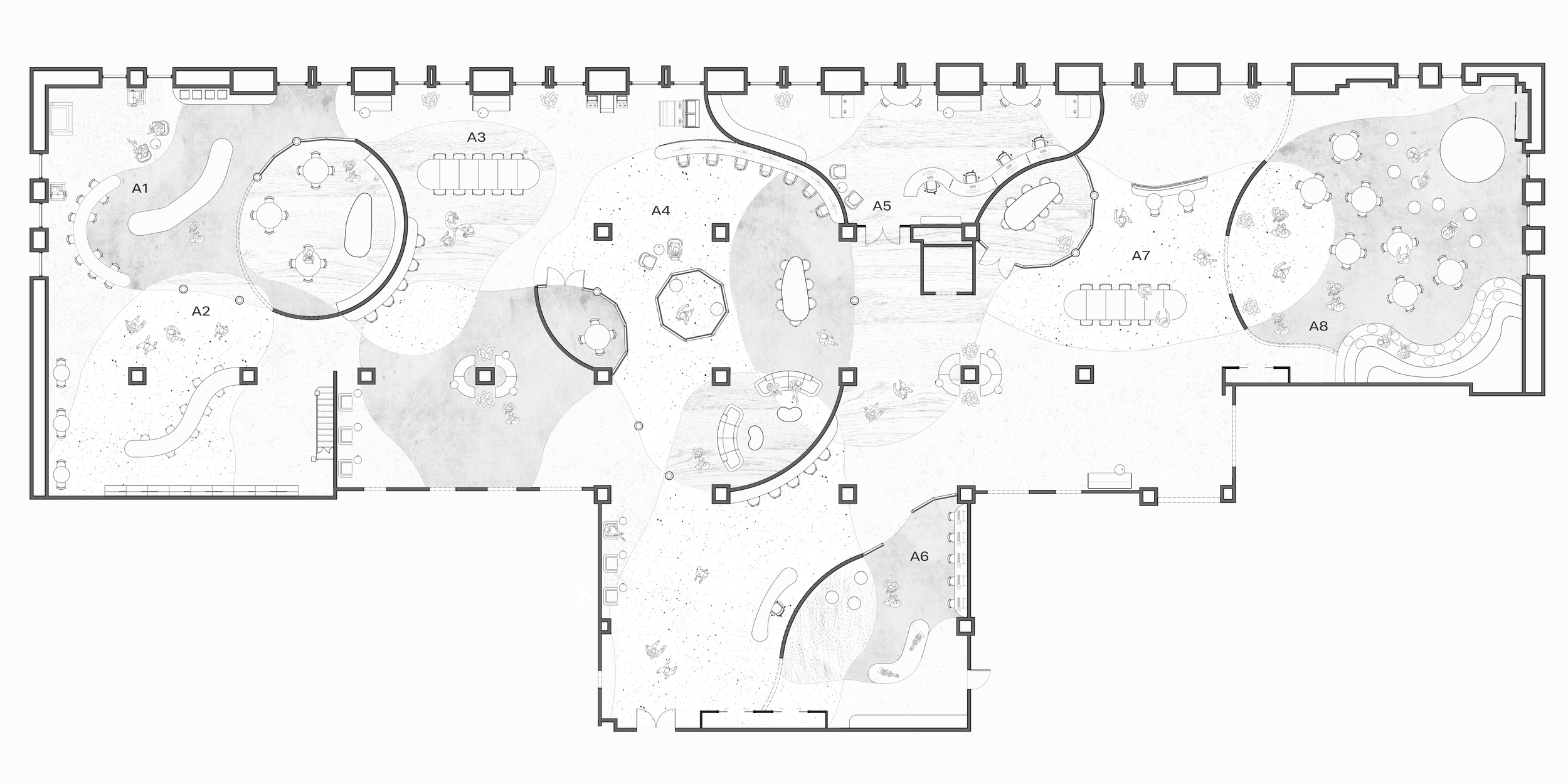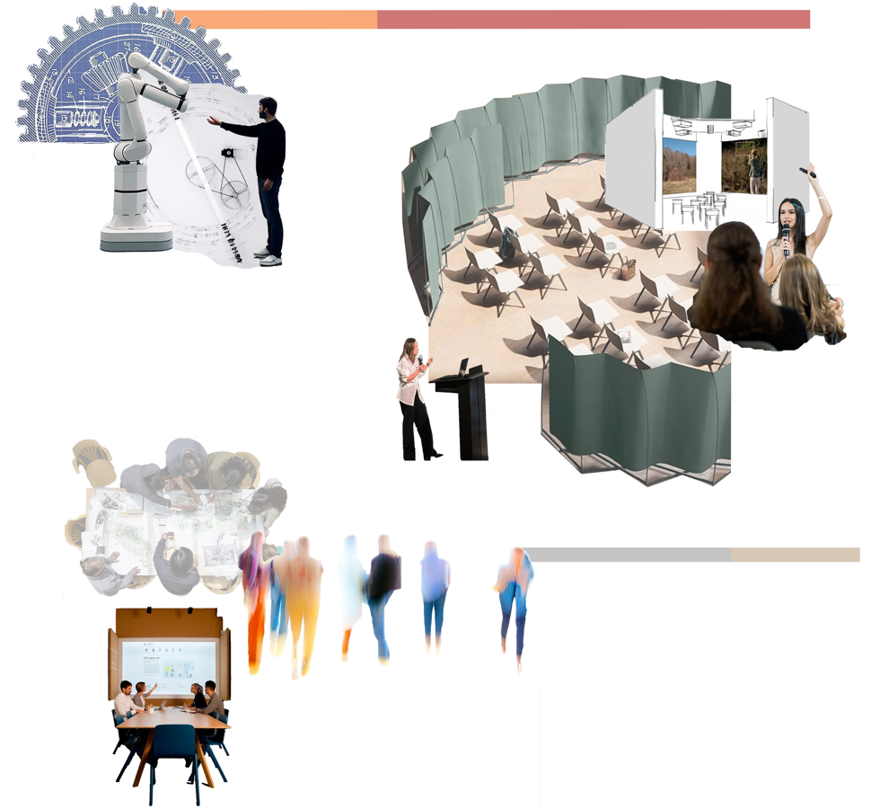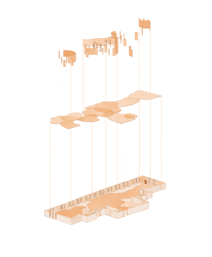 The programming and conceptual diagrams for the Wonder Lab explore how research, making, and collaboration are spatially organized and experienced. Through layered mappings, form studies, and visual narratives, they illustrate how movement, flexibility, and creative activity shape an environment that supports discovery, experimentation, and collective engagement.